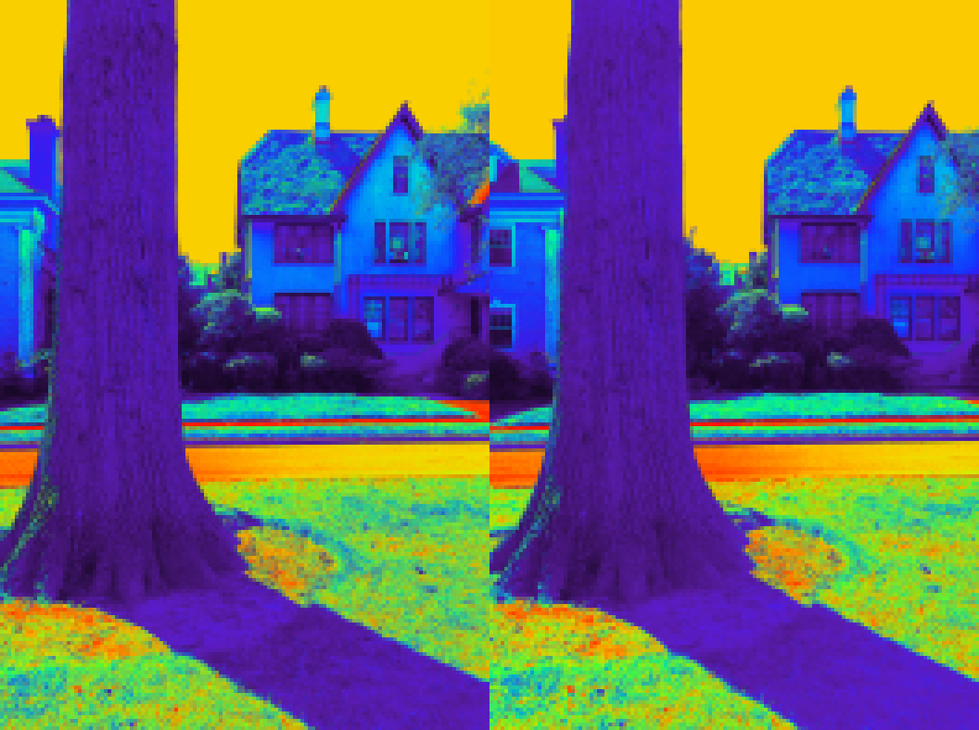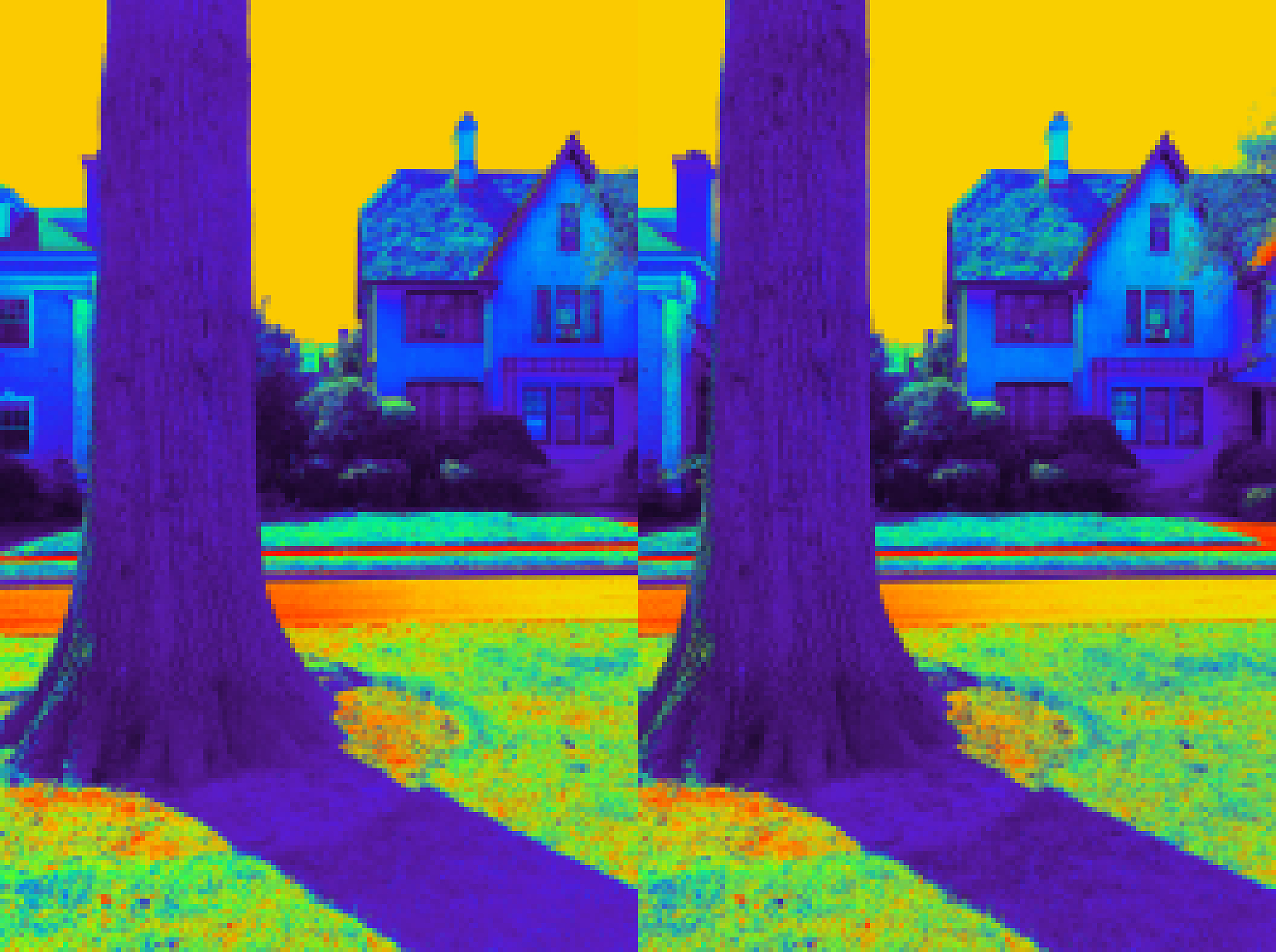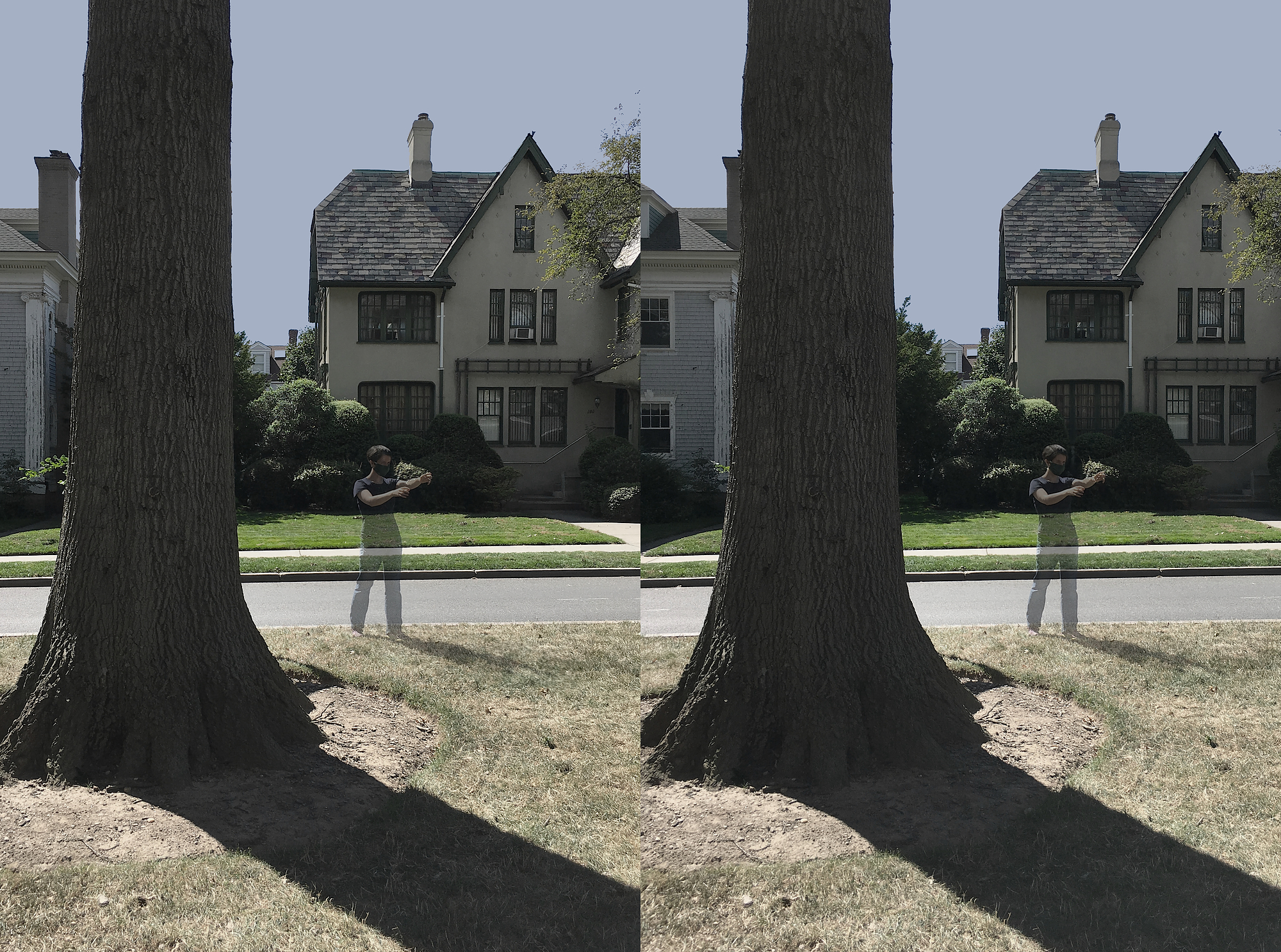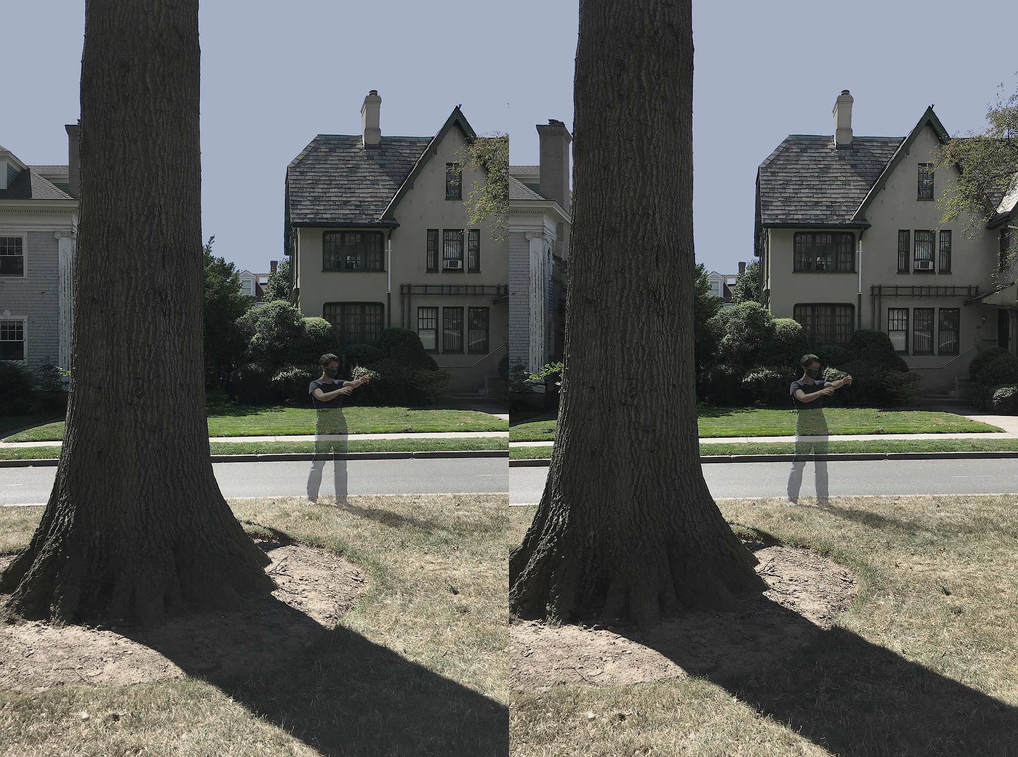 Who says ghosts wander only by night?… Here we have a ghost in suburban broad daylight, captured by a special spectral stereo-spectroscope (say that 3 times fast). You may notice a ghostly half-shadow being cast, but the apparition itself does not show up on infrared stereoscope (2nd pic).