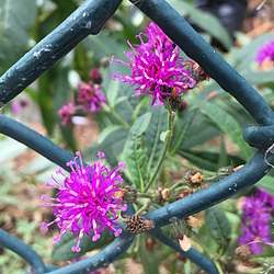 Random neighborhood shots of what is probably New York Ironweed, Vernonia noveboracensis. This genus name honors William Vernon, a British botanist who worked in Maryland in the late 17th century; the species name is literally βNew York.β