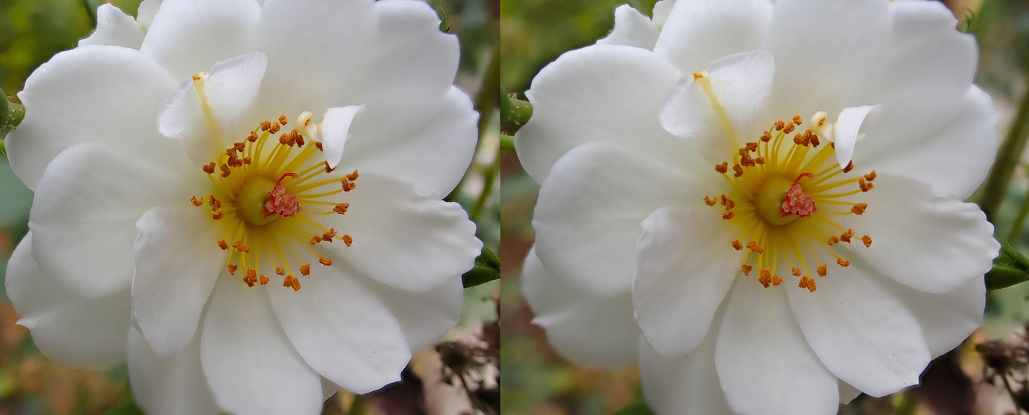 Here’s a semi-macro stereo of a flower I’ve shot before—the so-called Oscar Peterson Rose, a name I am biased to like, as Oscar Peterson was one of the jazz piano greats.