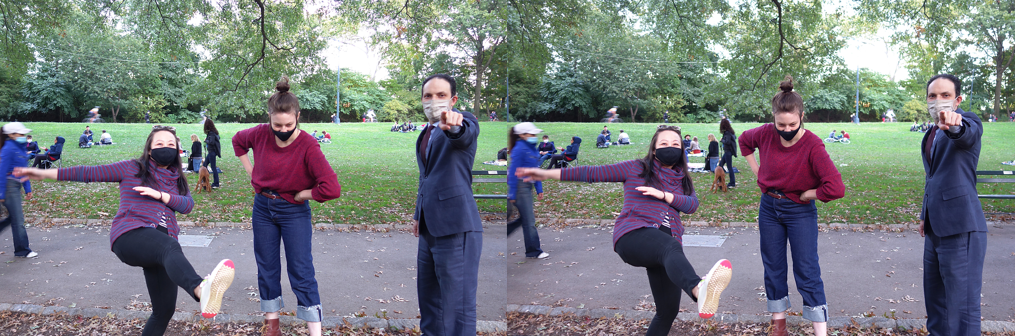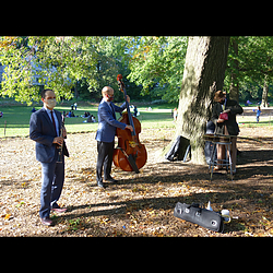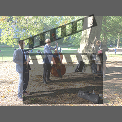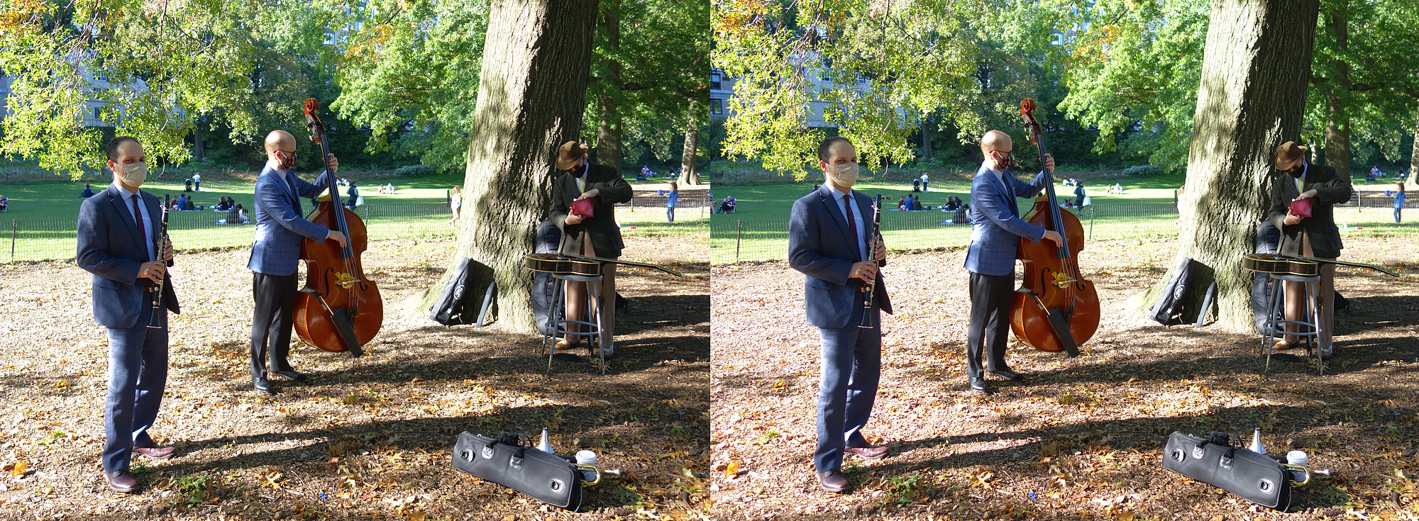 Here is a series of twin rig stereophotos from Central Park, where I played last weekend for the first time in a long while with a live band—a quartet with Glenn Crytzer, myself Gordon Au, Dennis Lichtman, and Ian Hutchison (see a 2D clip here.)