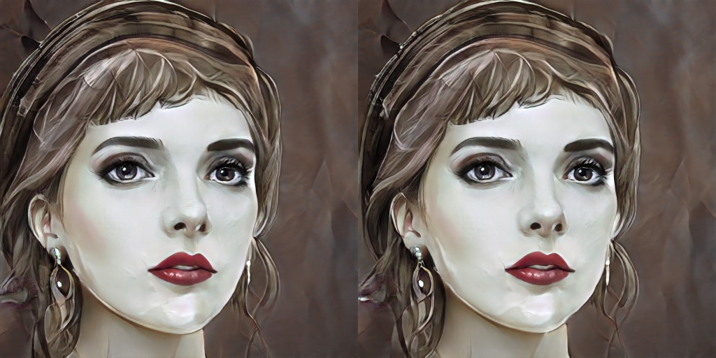 It’s pretty neat to tinker with the ‘genes’ behind a picture, and to crossbreed, mutate, evolve them, and to track their lineages—ancestors and descendants. In the portrait category, the images range from very ‘concept art’ and painterly to photorealistic. AND, there happens to be a yaw setting, which (imperfectly) rotates the heads—thus I was able to make these (imperfect) 3D pairs. (The rotation does not work very well with the more photorealistic portraits, so only including a couple.)