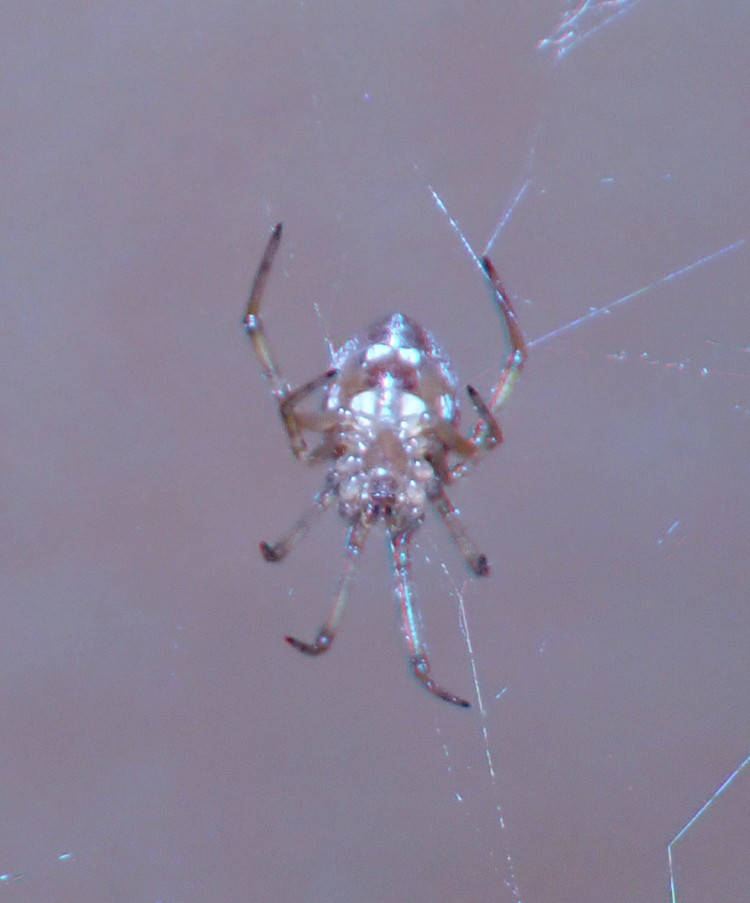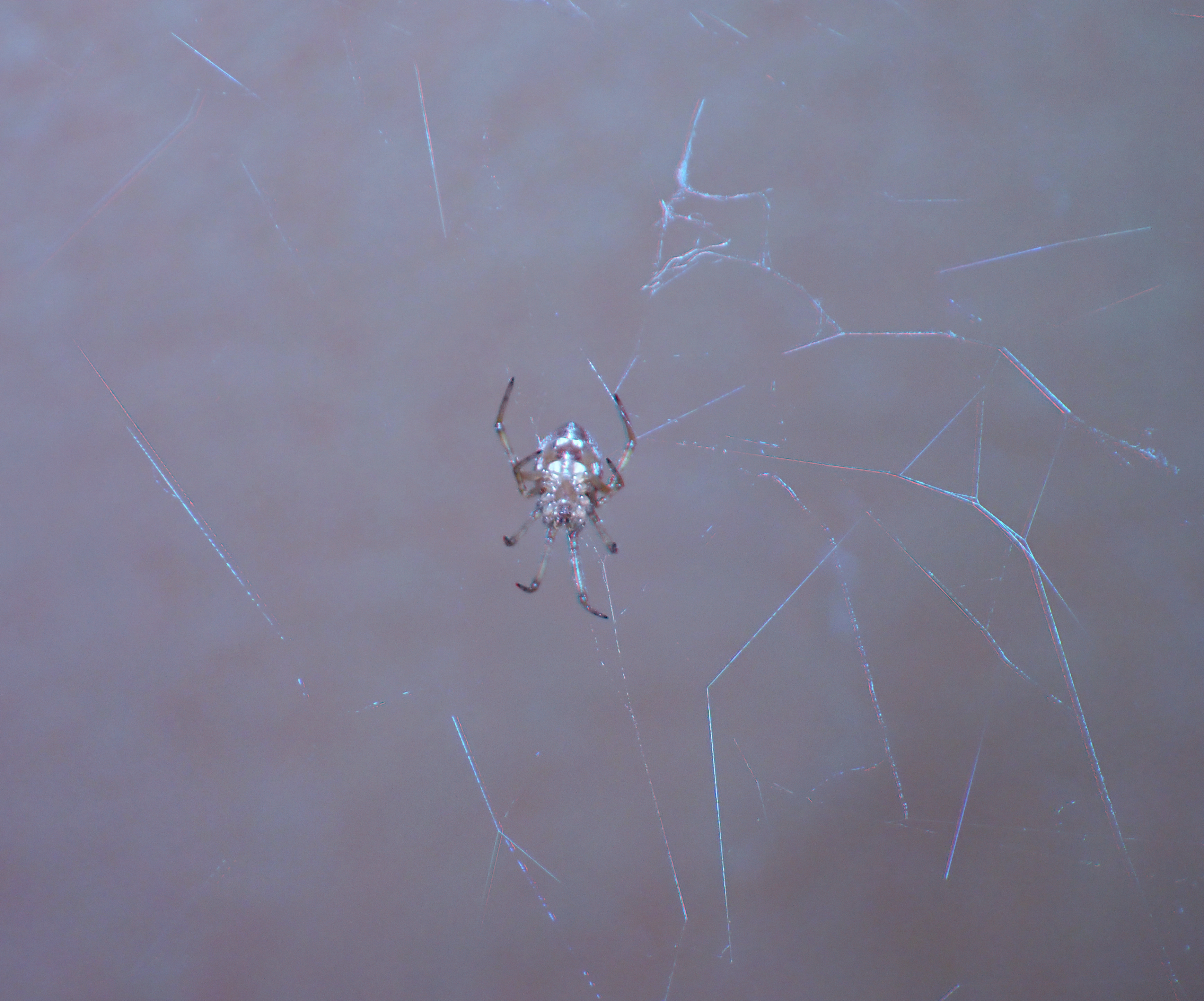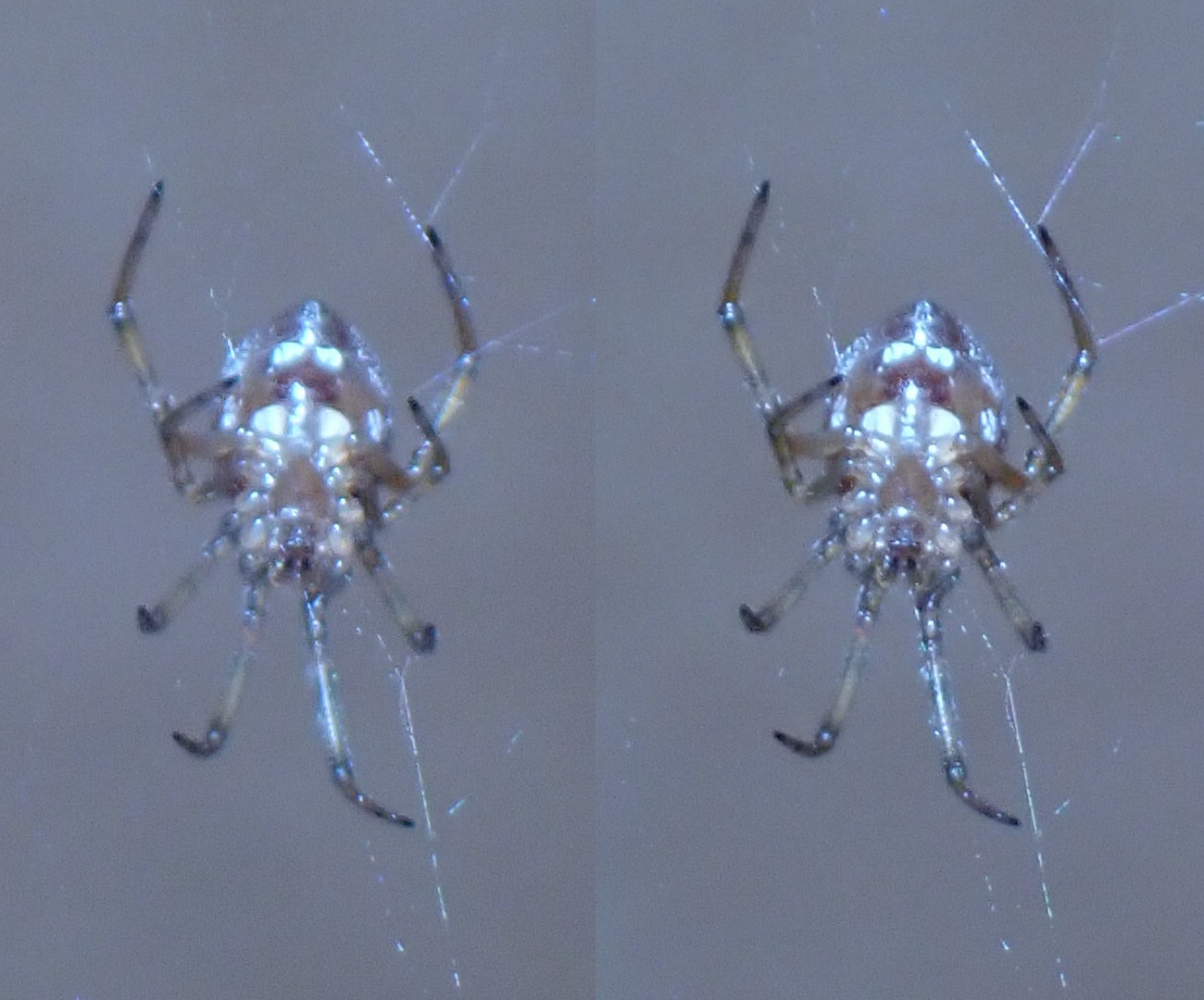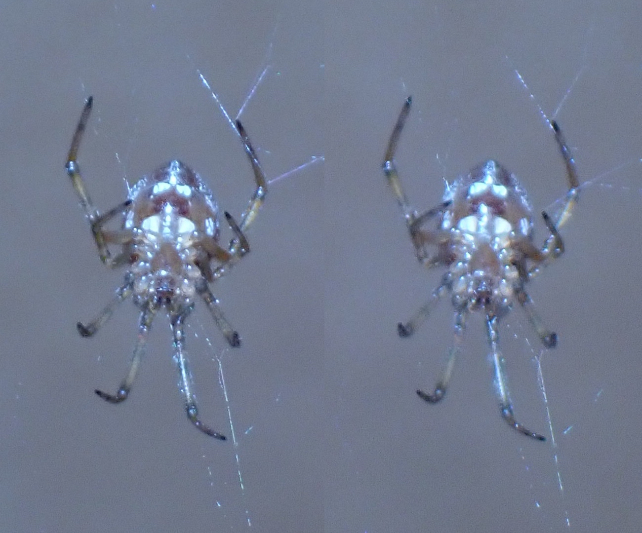 Teeny-tiny spiders in 3D macro!—Thanks to getting a flash diffuser to work :) The body of this first paler spider is about 3mm long, and that of the darker one is 2–2.5mm. So even though the details and focus aren’t perfect here, it was pretty ambitious to try to shoot subjects this small, and I’m happy this camera can.