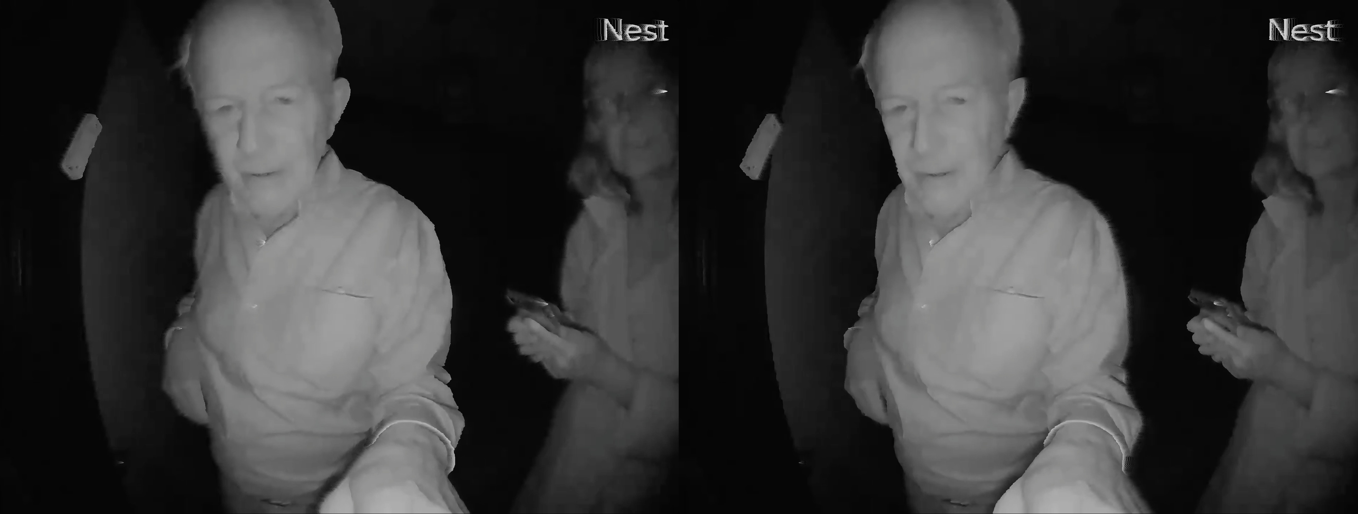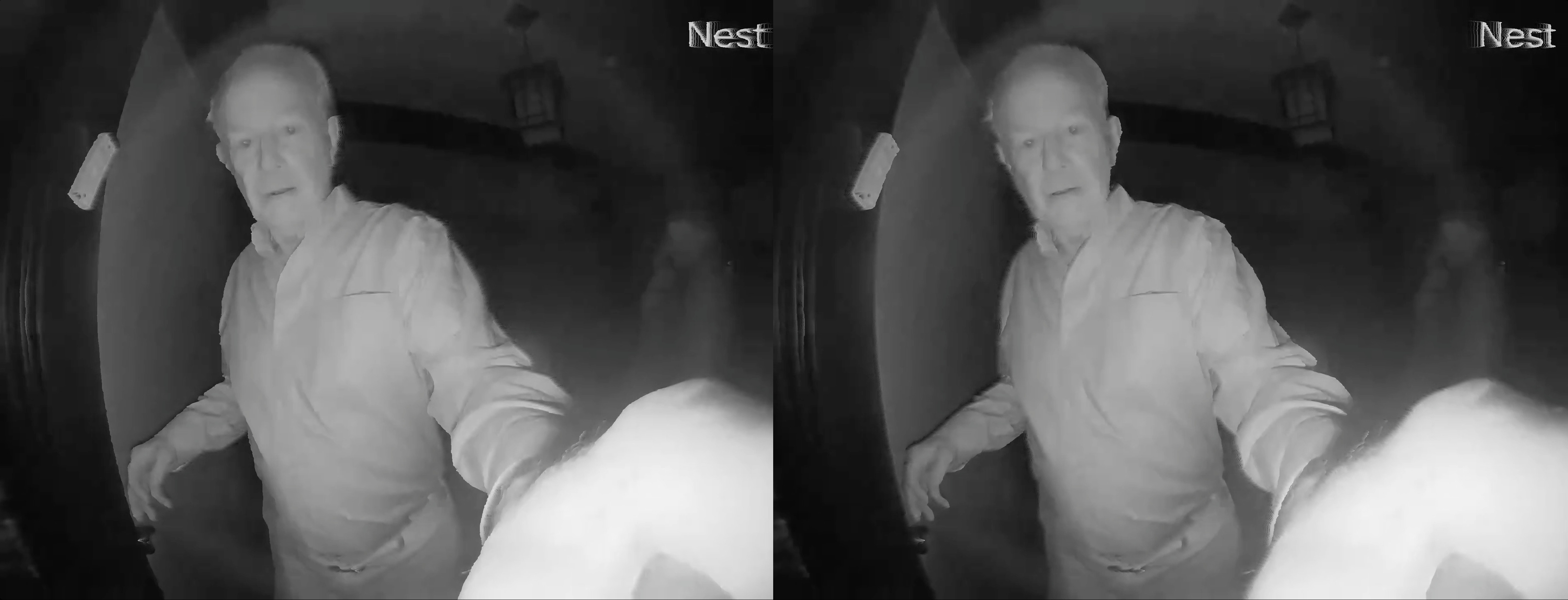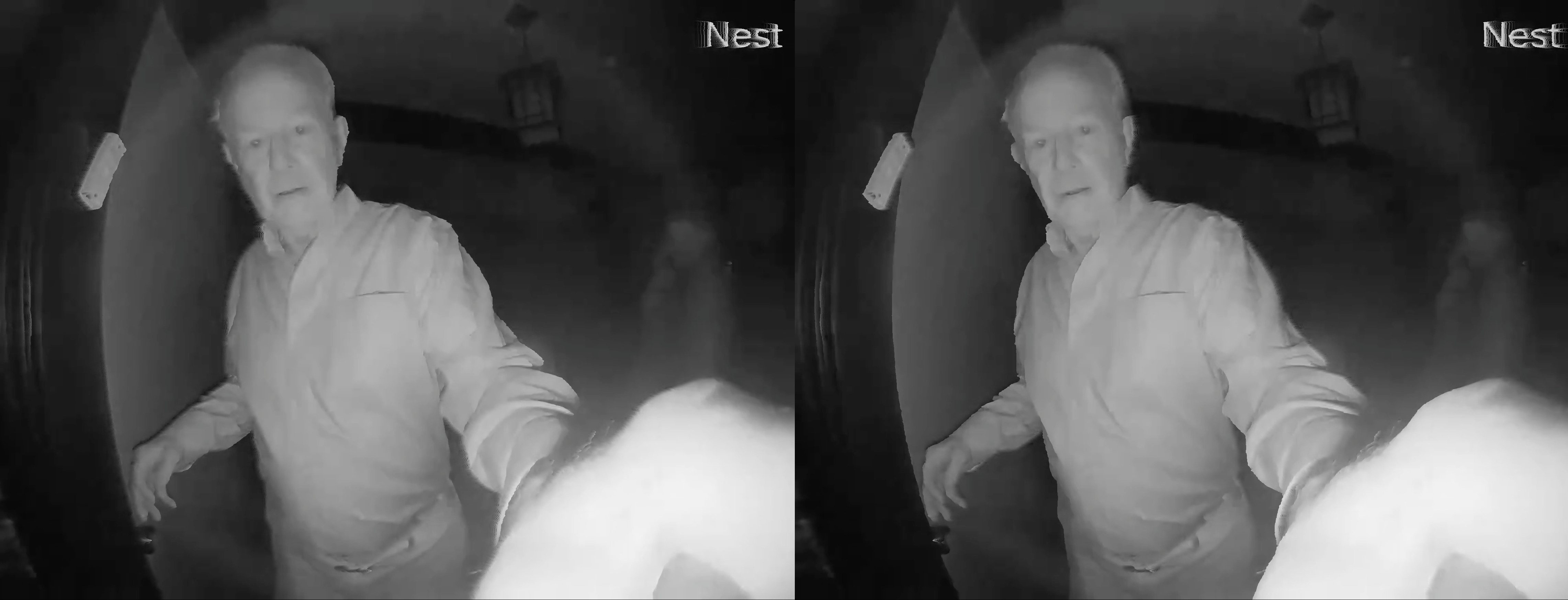 This Nest cam apparently uses infrared light for night vision, and since it’s from a single source, and since there’s not too much interfering ambient visible light here, these scenes are decent approximations of depth maps for themselves—which is how I converted them to stereos, via StereoPhoto Maker.