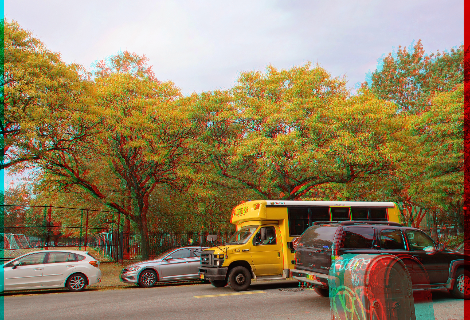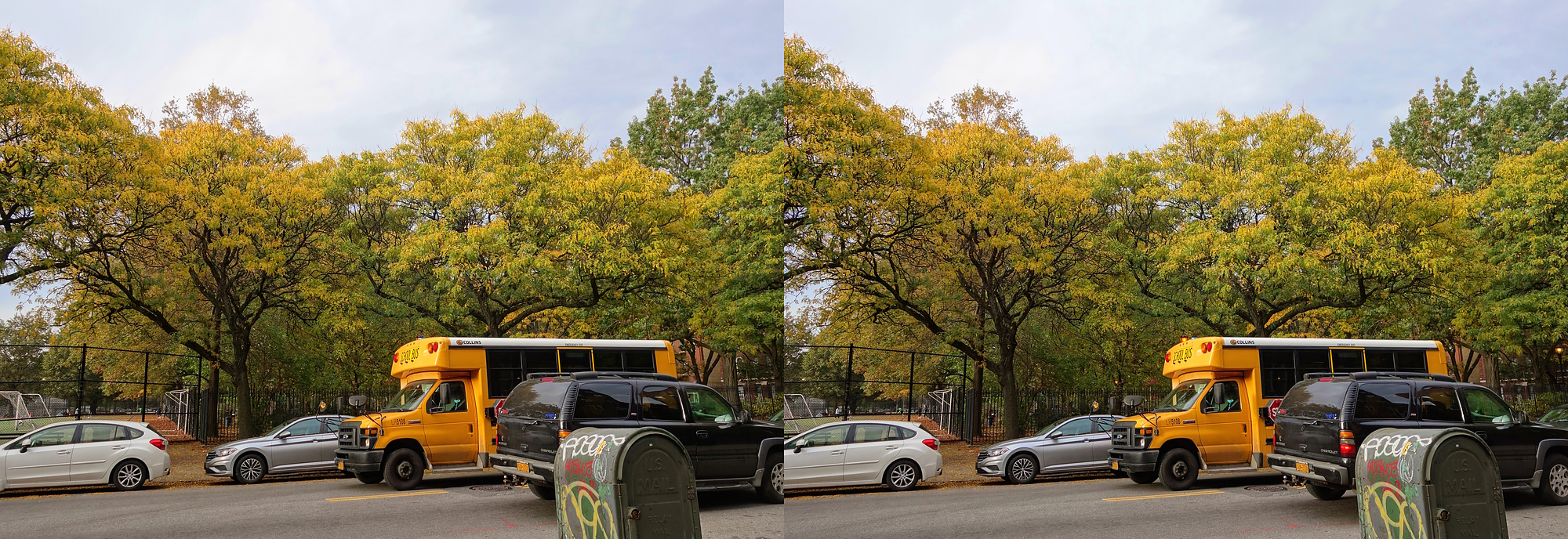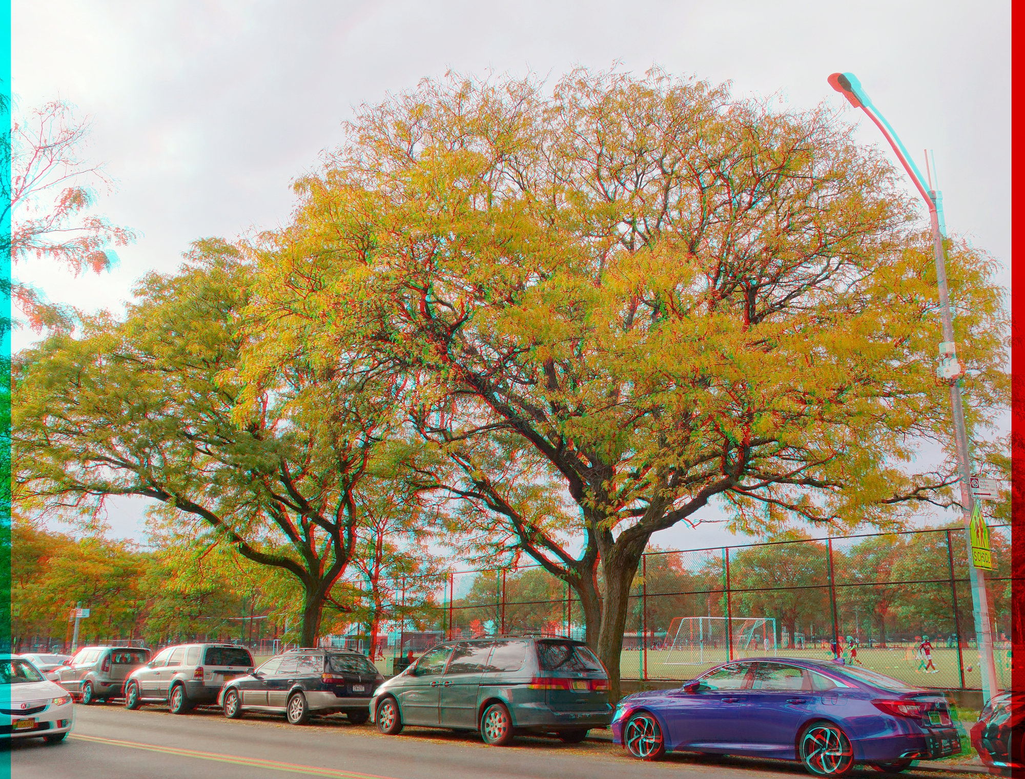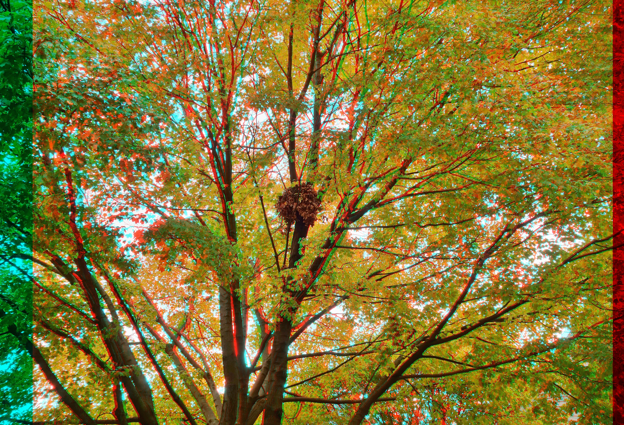 Autumn in New York scenes, shot on a twin rig. What do you think is in the center of the tree in this 3rd pic—a squirrel nest, perhaps? (See the zoom-in video.) The final shot has some expemental framing.
