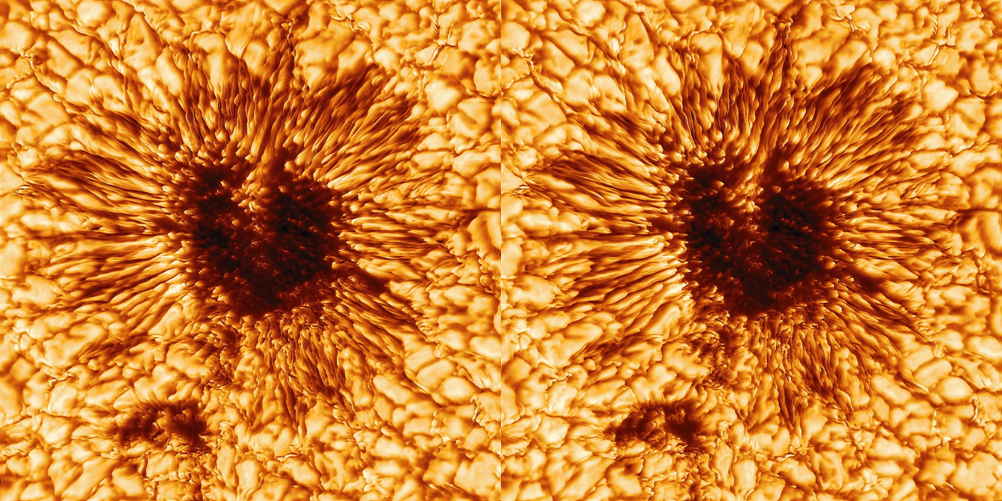 More 3D solar imagery! This is the highest-ever resolution image of a sunspot, just published in the journal Solar Physics by the National Science Foundation’s Daniel K. Inouye Solar Telescope in Maui, the world’s largest optical solar telescope. I used the original 2D image (2nd pic here) as its own depth map to convert it to artificial 3D, but in this case, the 3D may approximately reflect reality (relatively, but not to scale), since in the Sun’s corona, hotter brighter gas rises, and darker cooler gas sinks.