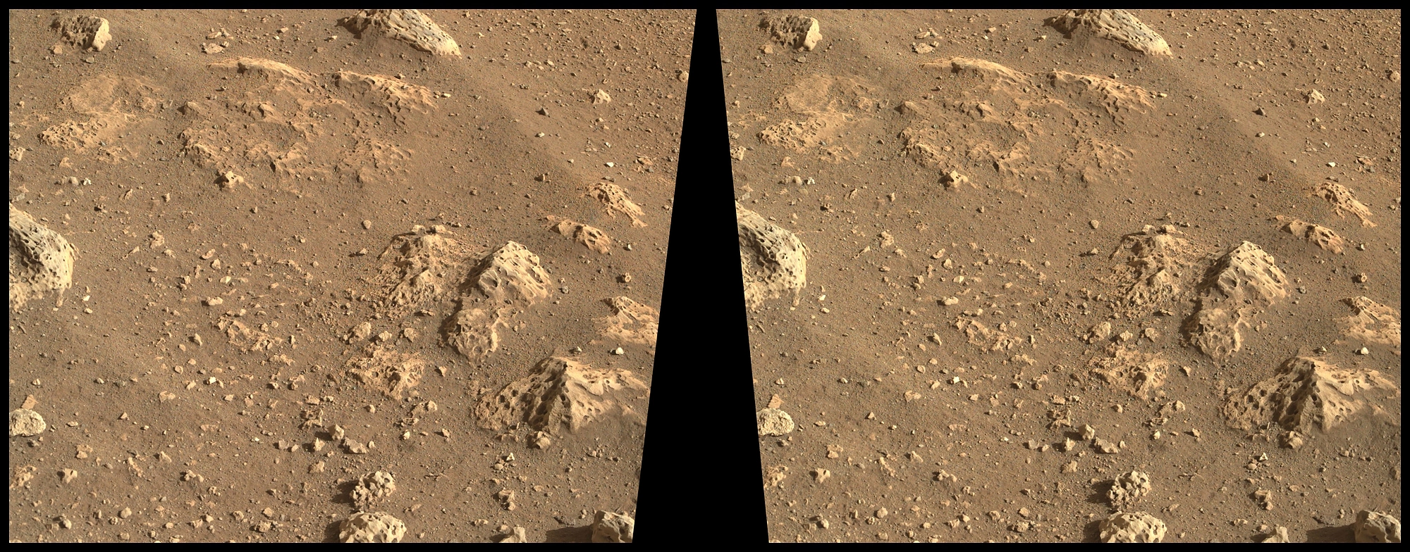 Here is a collection of 3D views inside Jezero Crater, all taken by Perseverance Roverβs Mastcam-Z color stereocamera. I found these pairs in the NASA archive, and aligned, cropped, and framed them to create the still stereopairs. For the videos, I extrapolated depth maps using StereoPhoto Maker, and in combination with the stereopairs, produced videos with the 3D-Photo-Inpainting AI. For each of the closer ground images, there are two stereovideos: one with a circular pan, and one zooming in.