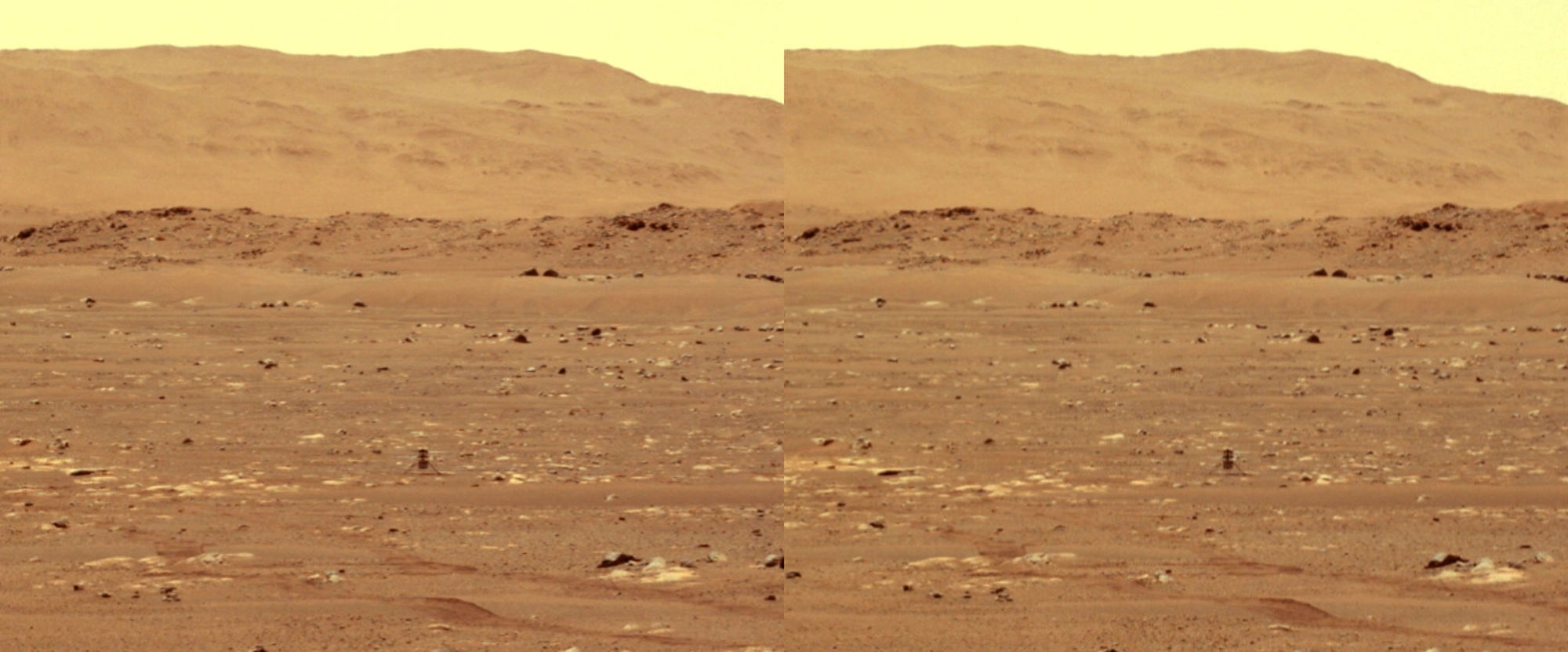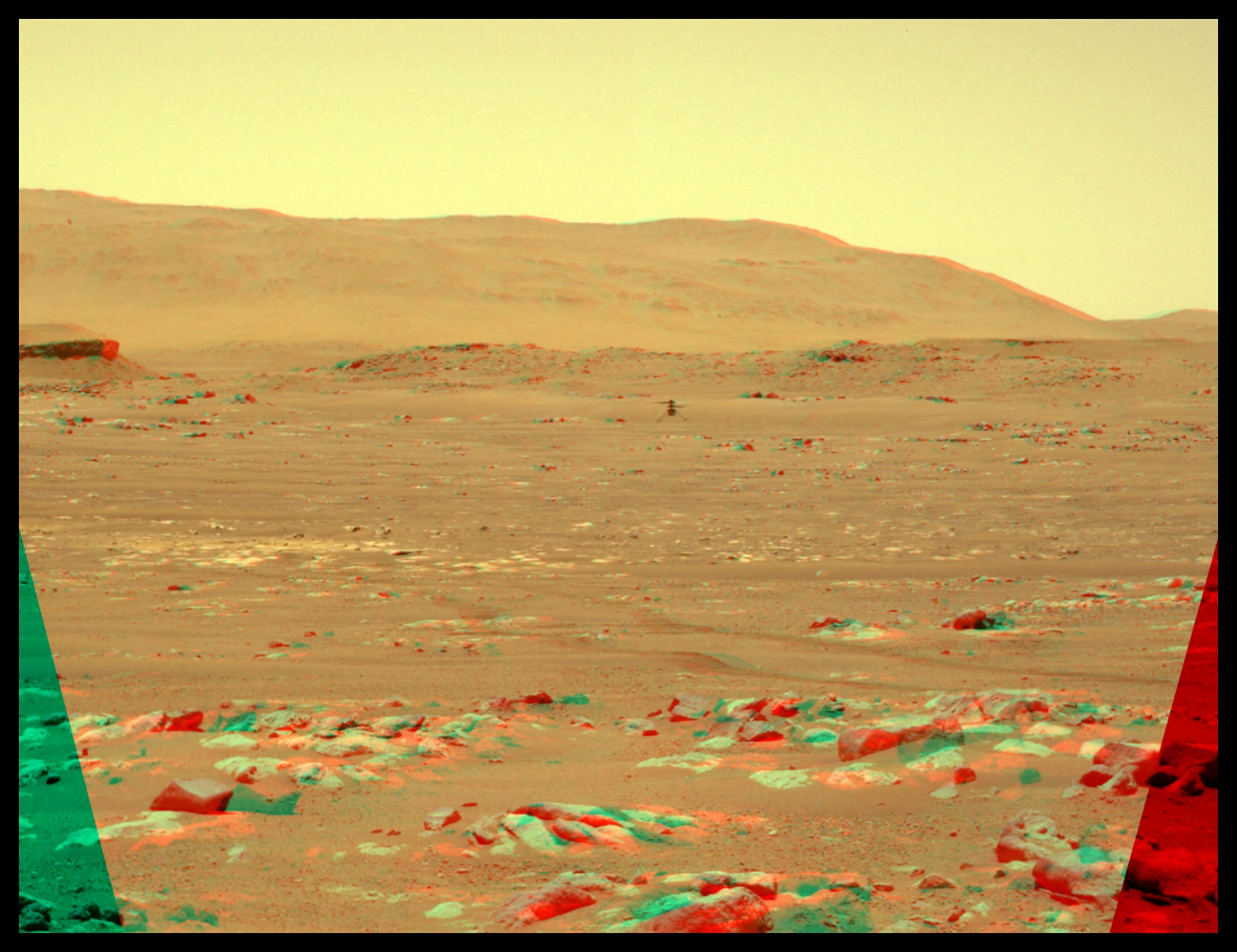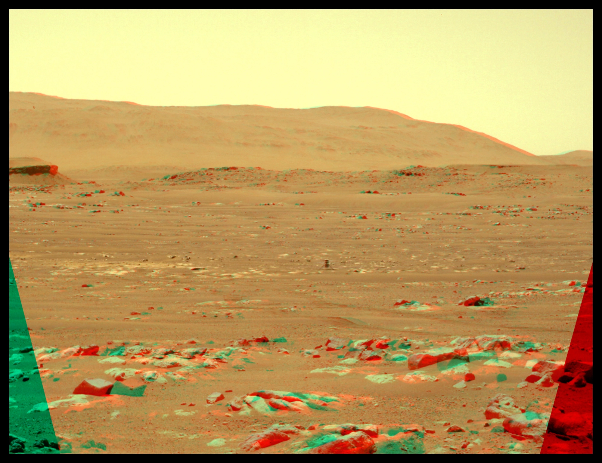 Yay, helicopter flight on Mars! Ingenuity finally had a successful test flight early this morning. The first item here is a zooming-in 3D look at Ingenuity airborne, taken by the Perseverance Roverβs stereo NavCams. It does get pretty grainy when zoomed in this closely, since the photos are relatively small, and the rover is ~65m away. The 2nd and 3rd videos are animations of the full wide view and a closer one, and are followed by 3D stills of each respectively.