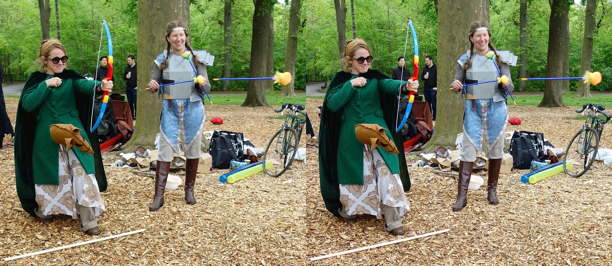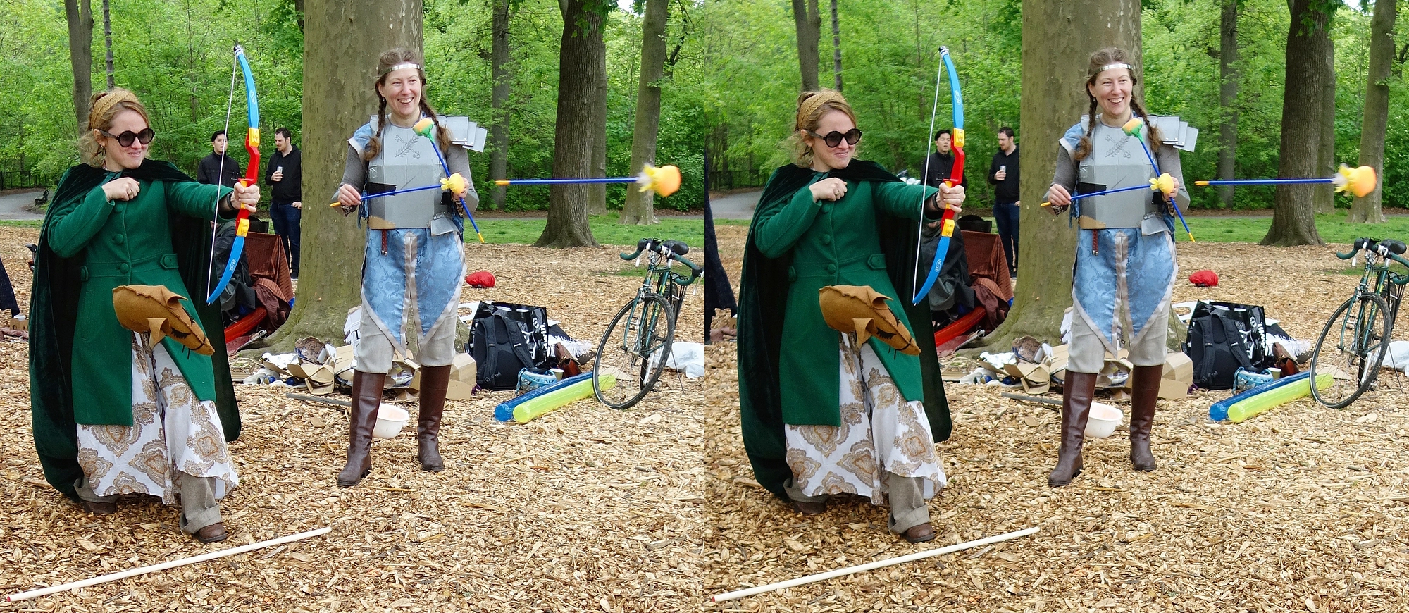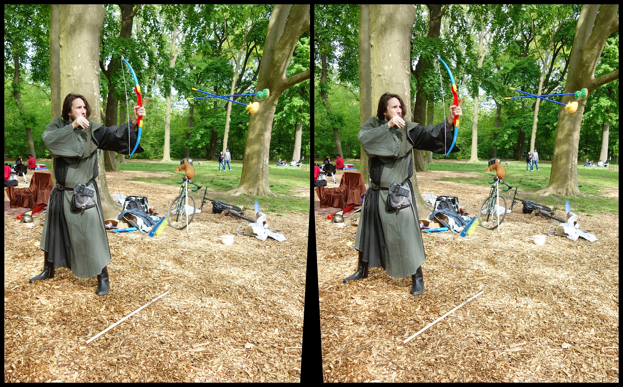 Some stereos here also show the trick shot competition, including firing two arrows at once, and the behind-the-back special. I myself executed a side roll shot, during which I was naturally but unfortunately not behind the stereo cameras!