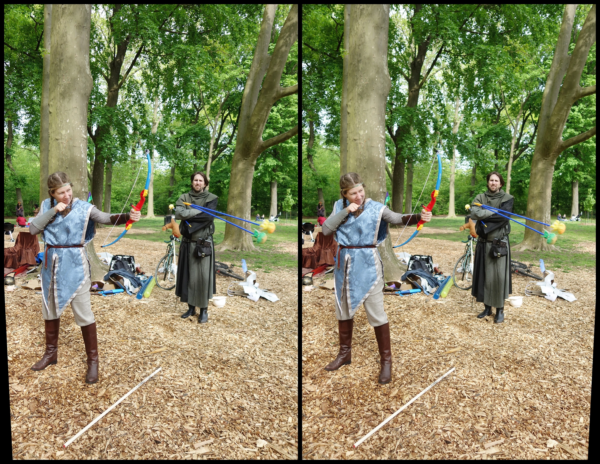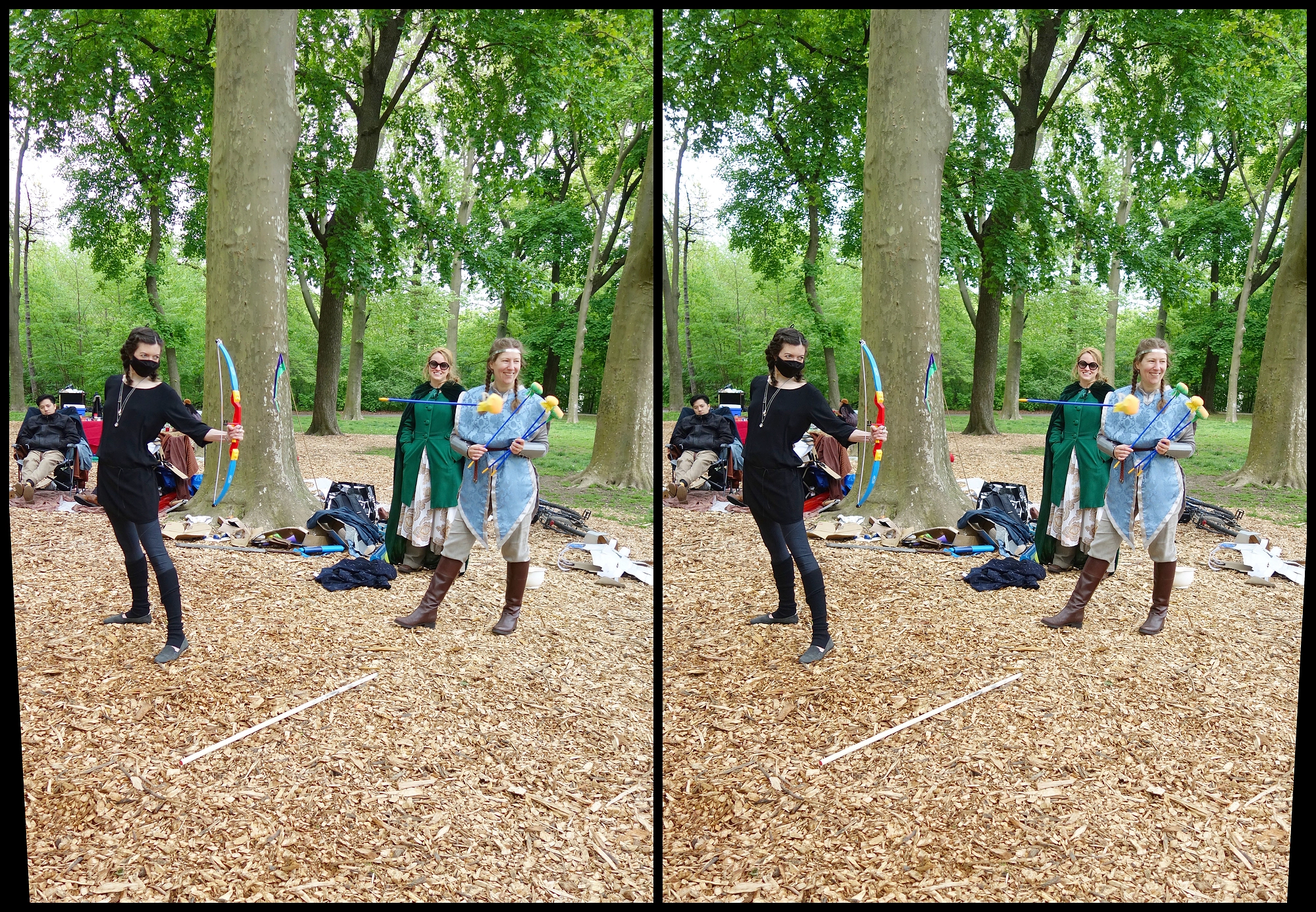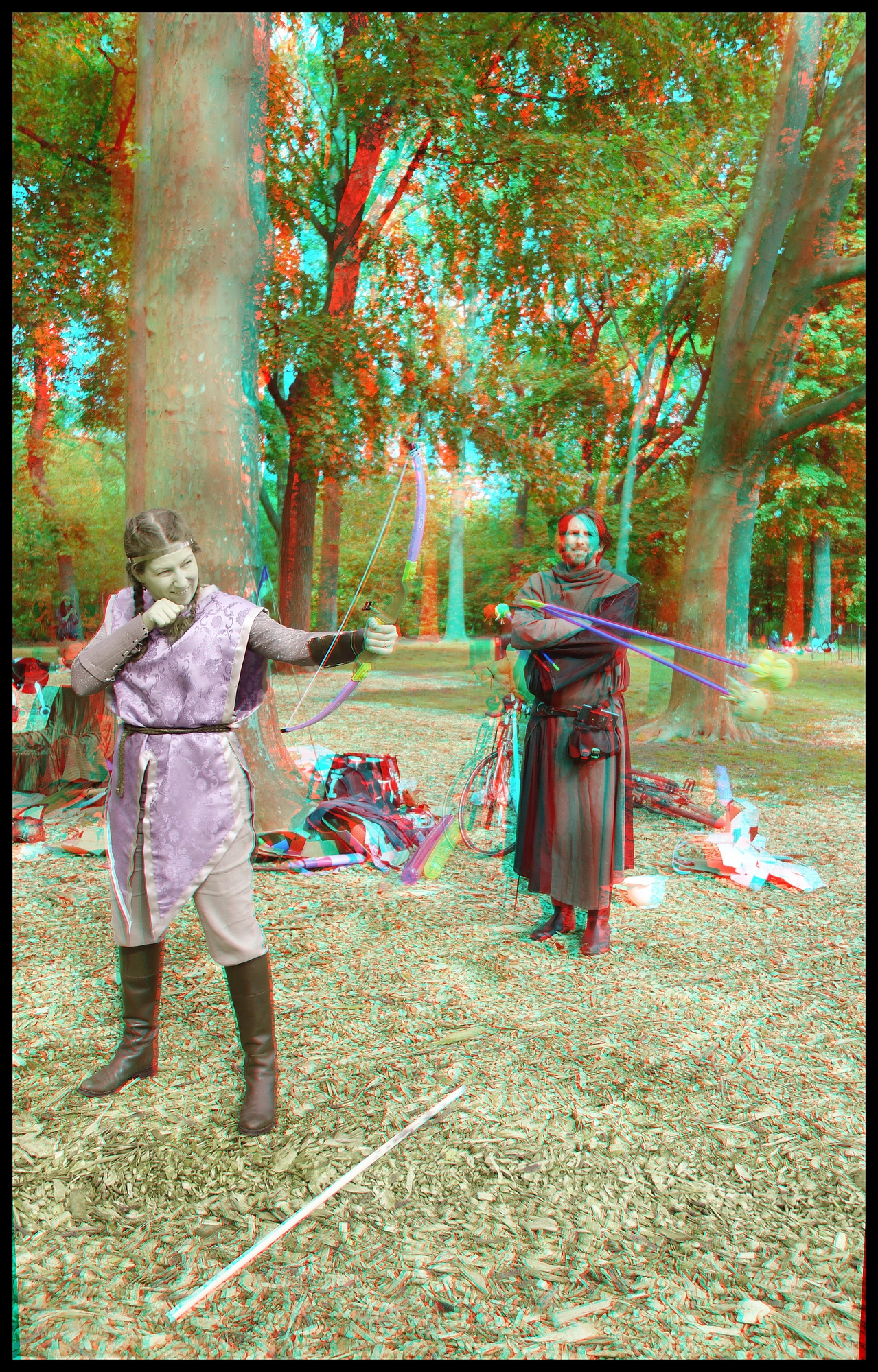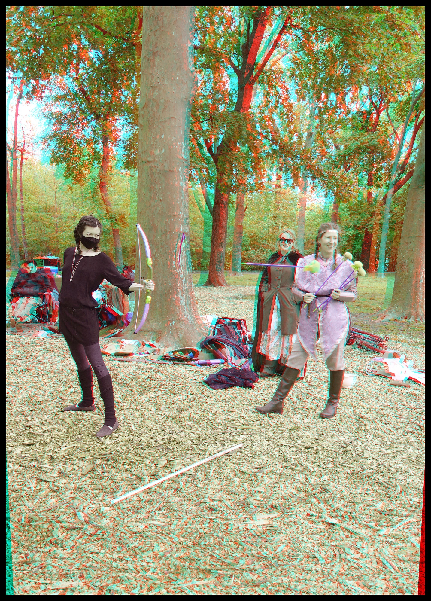 Here is part one of my 3D documentation of a silly and fun ‘Medieval Picnic’ hang in the park, with vaccinated friends, showing parts of the archery contests! I was thrilled I got the settings on my twin rig correct—and got them synced well enough—to capture the arrows in mid-flight!