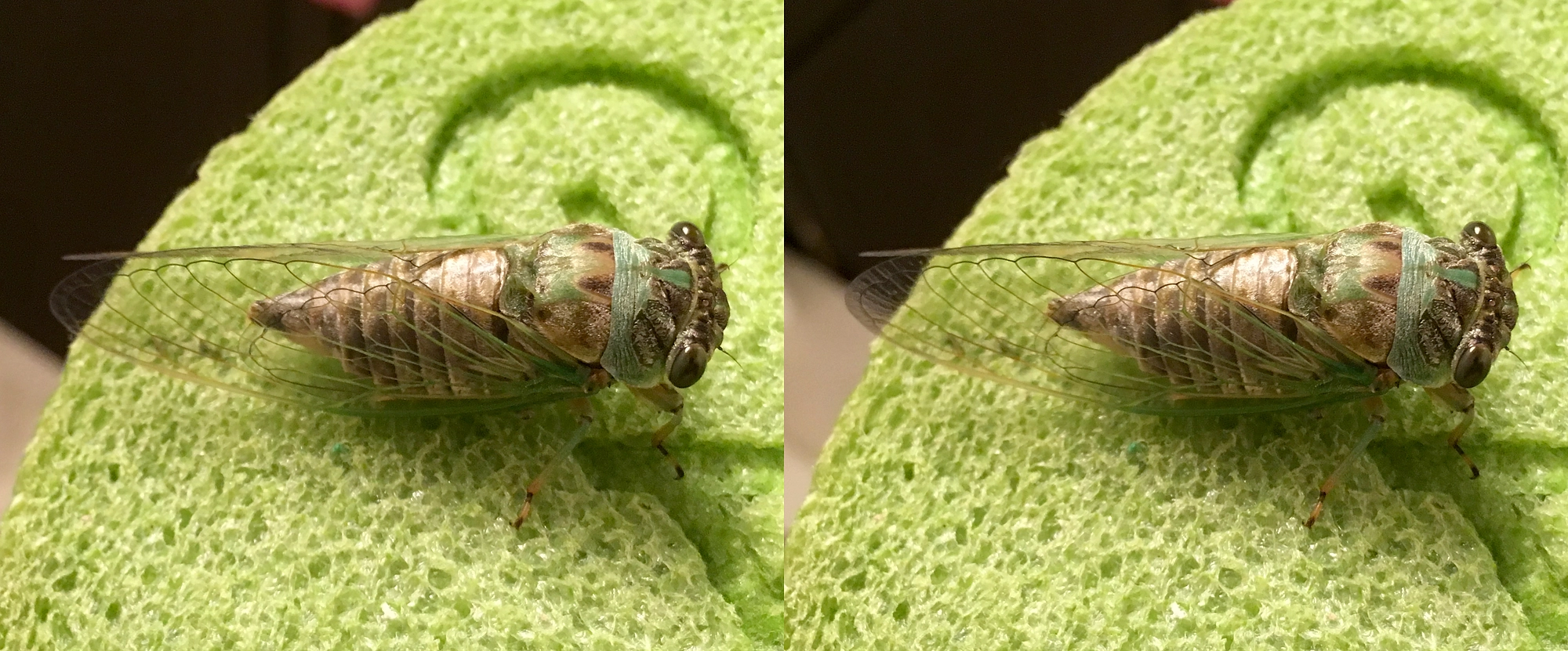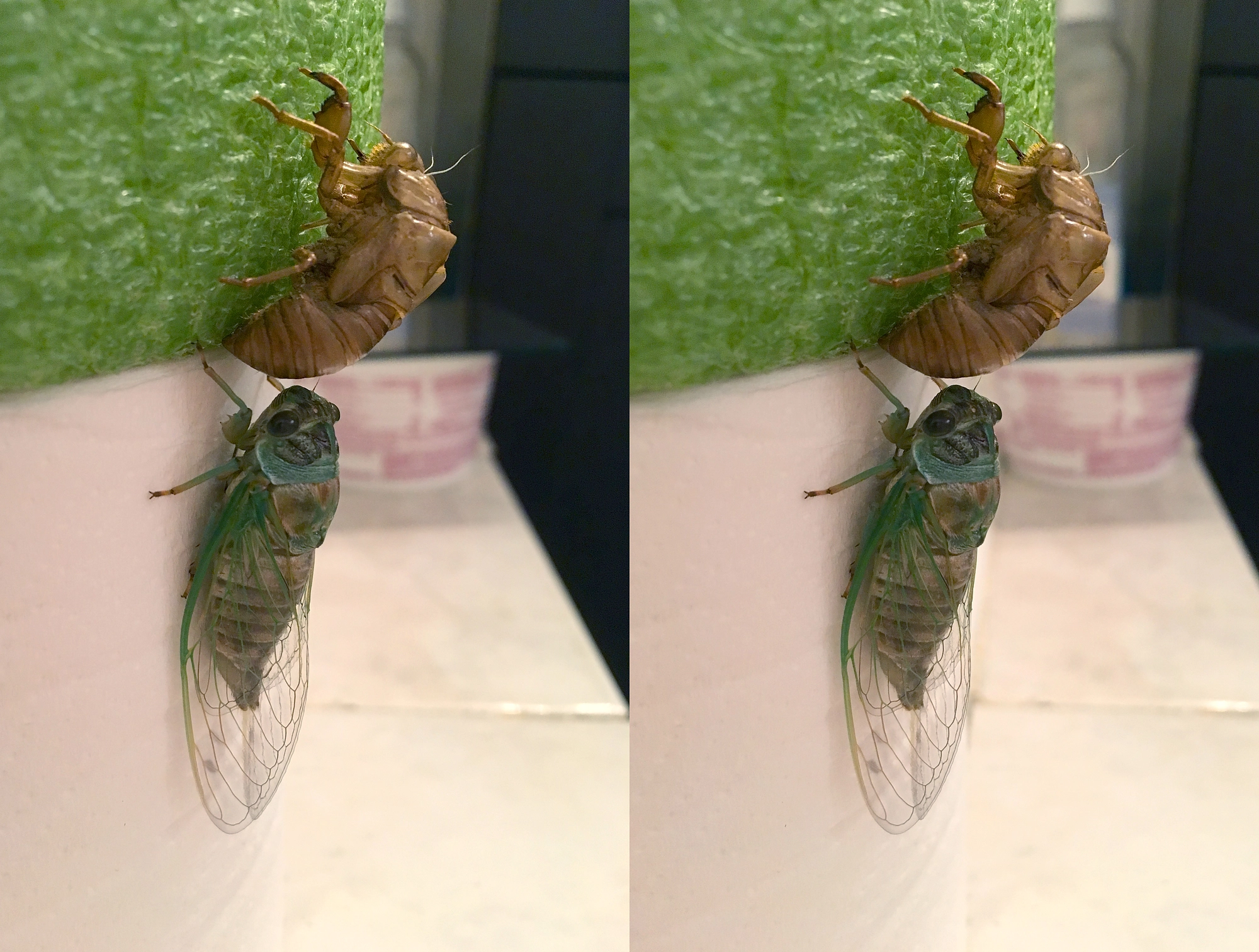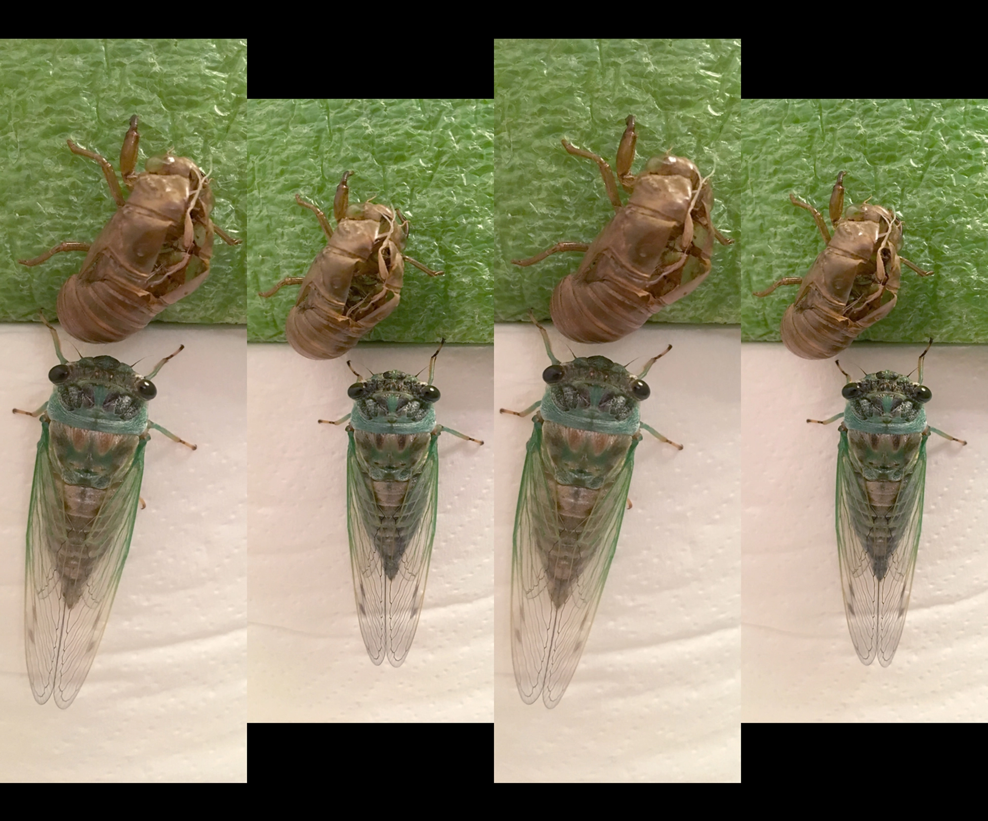 OK, flashback to last year…so we last saw Betsy the Cicada about an hour after she finished eclosion (emergence), at around 9:45PM (AUG 24, 2020), and her wings had just shifted into their imago (adult) posture. She was still quite green and teneral (soft).