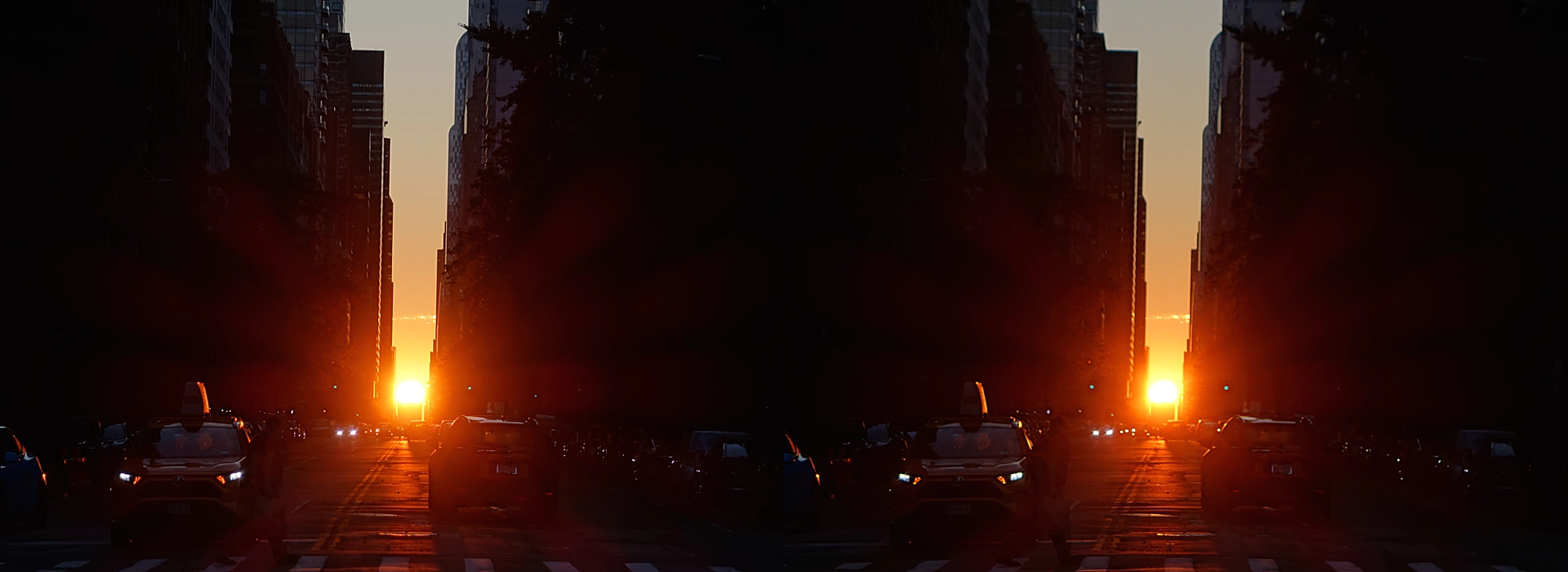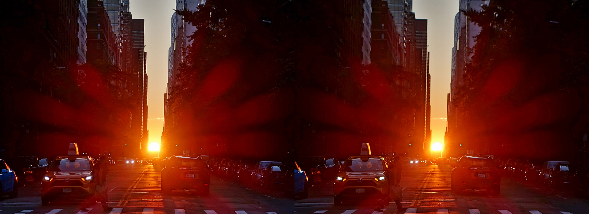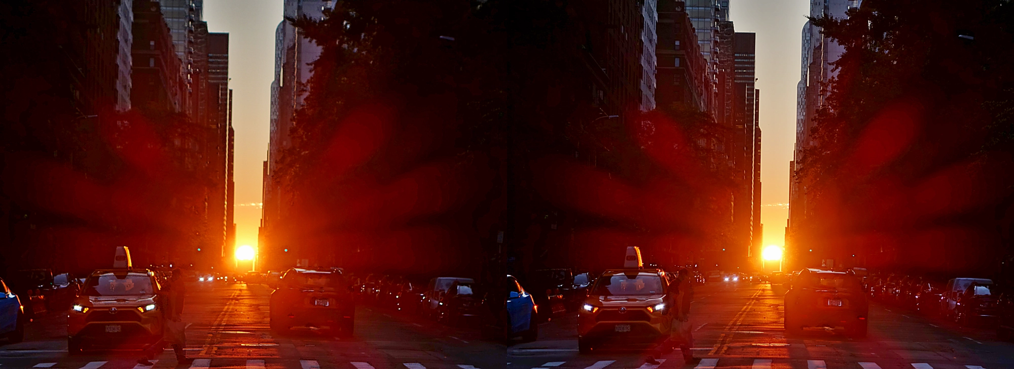 Of the four Manhattanhenge sunset dates this year, this is the final, and the only on which luck has been with me :) See here my stereo at peak alignmentβboth at low exposure and with pseudo-HDR, plus a stereoanimation that fades between them.
