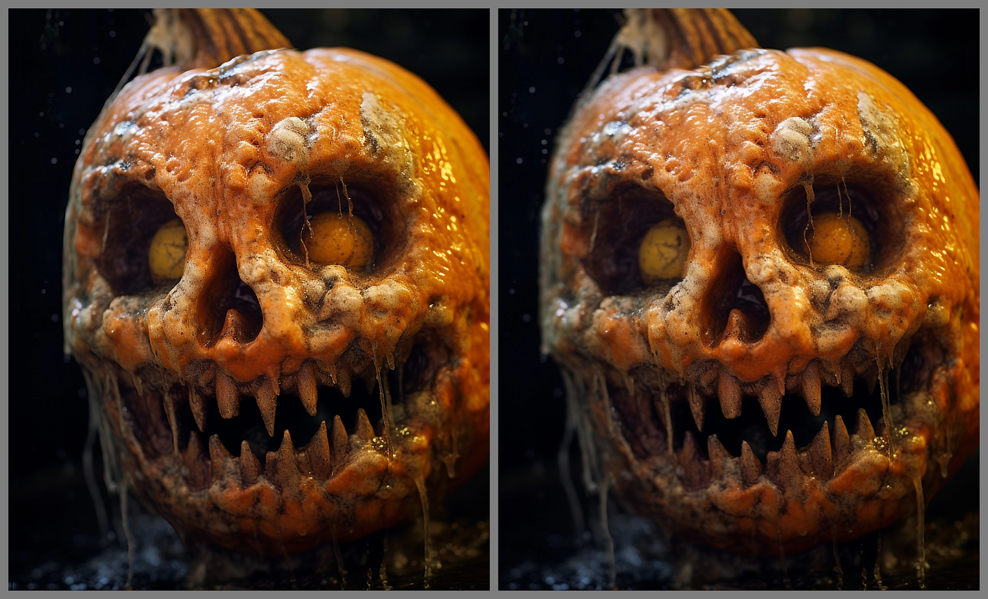 Happy Halloween, all! Itβs been a very busy year, but here is some of my recent A.I. artwork for the occasion, rendered as 2D animations + 3D stereopairs. I made these using Midjourney, along with inpainting, overpainting, compositing, and other editing; and 3D-converted them using MiDaS, more editing, and StereoPhoto Maker. (See the A.I. in 3D workshop for details on MiDaS.) In addition, I use FFMPEG to assemble animations, and ImageMagick and Photopea for image processing and editing.
